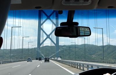 ゴールデンウイークの真最中だったので結構混んでいました。ノロノロ運転というほどではなかったけれどたくさんの車が淡路島へ渡っていました。お天気が良かったので橋の両側からはきれいな海を見ることができました。橋を渡るというのはワクワクします。