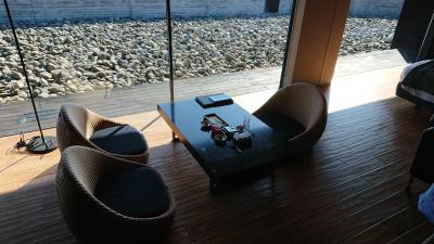 最上階のスイートに宿泊しました。海に向かった露天風呂は温泉のかけ流しでとても気持ちよく薄い塩分のお湯は体がポカポカ温まります。部屋の中には低い段差があちこちにありちょっと危険かな。冷蔵庫には瓶のビールとノンアルビールが入っていました。夕食は料理長が来て目の前でアワビを焼いてくれて、踊り焼きというだけあって貝殻の上で踊り狂っていました。焼けてすぐのアワビは柔らかくておいしかったです。