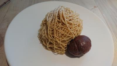 ビルの間のオアシスです。看板だけ見たらはんこ屋さん?と思うようなお店ですがおいしいスイーツがありました。丹波栗のしぼりたてモンブランは細く絞った丹波栗のクリームが繊細ですごくおいしいです。大きな渋皮煮が外に1個、中にも1個入っていて満足度が高いです。飲み物とセットで頼むと飲み物が100円引きになります。
