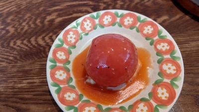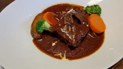 夕方6時ごろ行きましたが待ち時間はありませんでした。スタッフも丁寧な接客で申し分ありません。氷の入ったお水のポットもたびたび取り換えてくれて常に冷たいお水を飲むことができました。ハンバーグのセットとたんシチューを頼みました。はじめにトマトの丸ごとのサラダが出てきましたがかかっているソースが美味しくてトマトも冷たくておいしかったです。ハンバーグにかかっているのはビーフシチューでハンバーグの上にシチューのお肉が乗っていてとても美味しかった。たんもほろほろに煮込んであっておいしかったです。