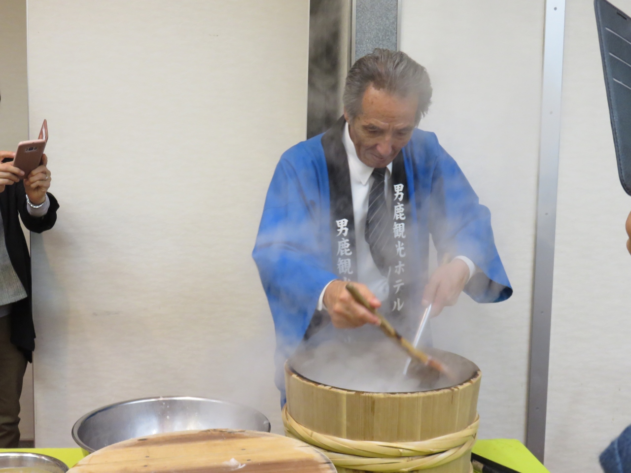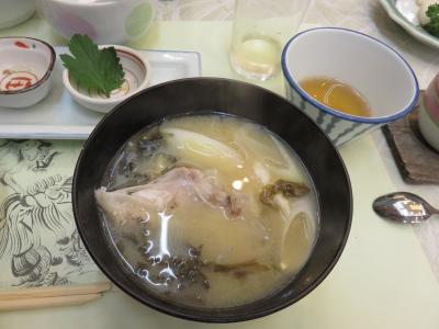ホテルは古くて継ぎ足しているので部屋に行くのが大変でした。夕食のとき石焼料理の実演があり、おけに入った水に赤く焼けた丸い石を入れて鯛のアラの入ったお味噌汁になって出てきました。これがだしが聞いていて抜群に美味しかったです。汁だけお代わりができました。