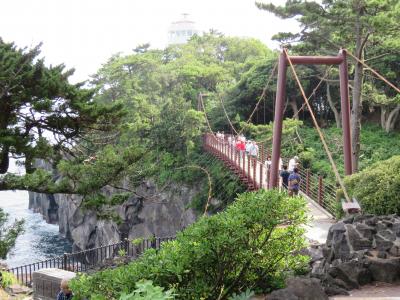 駐車場は500円です。駐車場から少し歩くと灯台があり、そこから少し行くと吊り橋があります。しっかりした橋なのでぜんぜん怖くありません。青い海が見えて景色がいいです。橋を渡ったところに東屋のようなところがあり座って休めるようになっています。