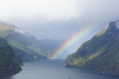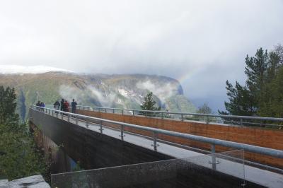 11時のバスに急きょ乗ることにしました。雨が降っていたので迷いましたが、止むと信じてバスに乗りました。往復1時間、展望台で30分の1時間半のツアーです。雨だったのでお客は私たちだけでした。30分山道を走って展望台につきました。展望台には数人の観光客がいました。着いたときは小雨が降っていましたがだんだん止んできて、海面から虹が上がってきました。虹がどんどん育ってきて上へ上へと伸びてゆくのです。こんな虹を見たのは初めてでした。帰り道で窓から写真を撮っていたらバスを止めてくれて、ワンミニッツといってドアを開けてくれたので外に出て写真を撮りました。運転手さんも身を乗り出して写真を撮っていました。