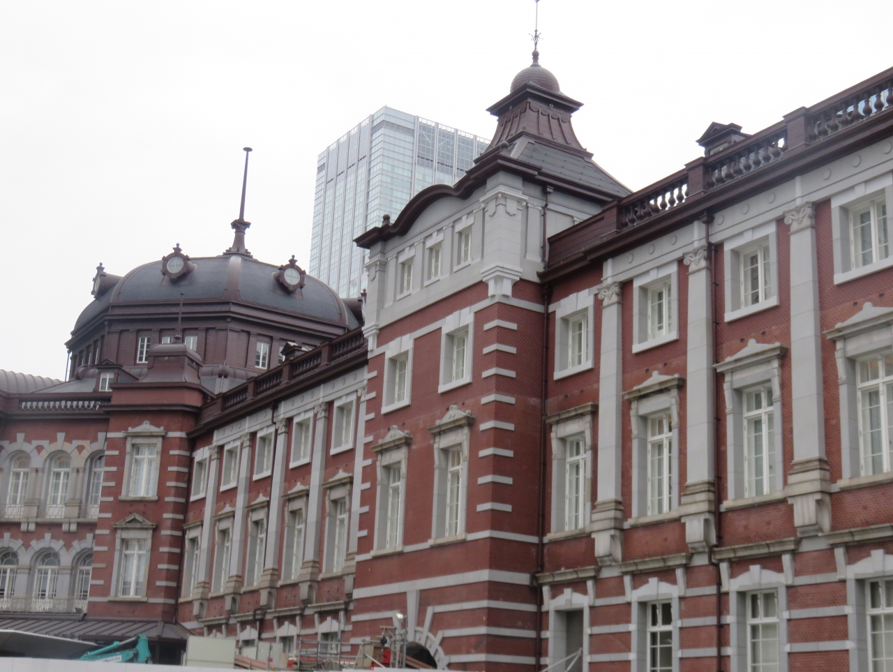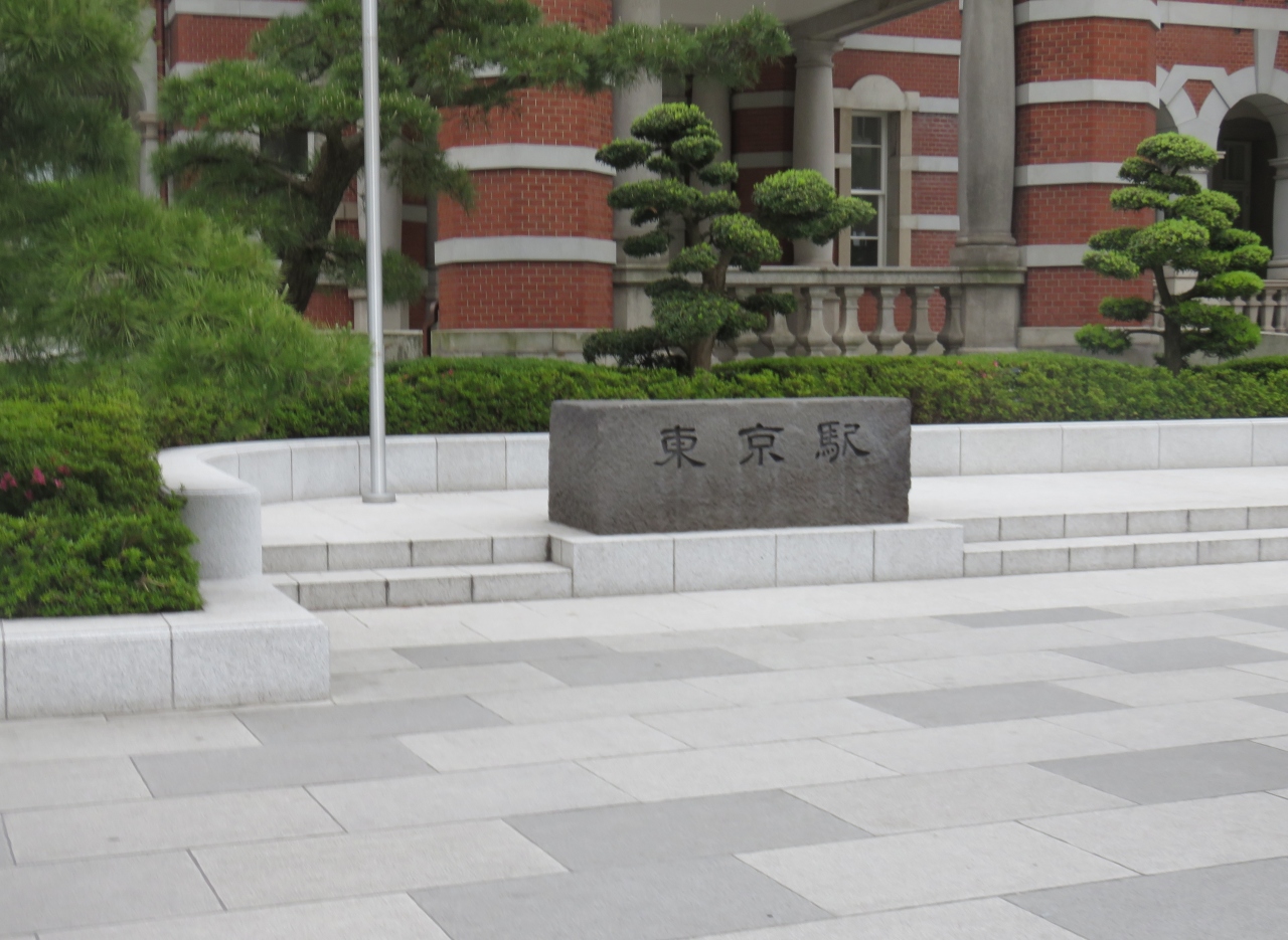 駅の中は普通の駅ですが一歩外に出て見上げると歴史を感じる赤レンガの素敵な建物です。よくこれだけのものを今に残せたものです。駅前広場は工事中で幕が張られていましたが、東京駅と書かれた石の前では大勢の観光客が写真を撮っていました。