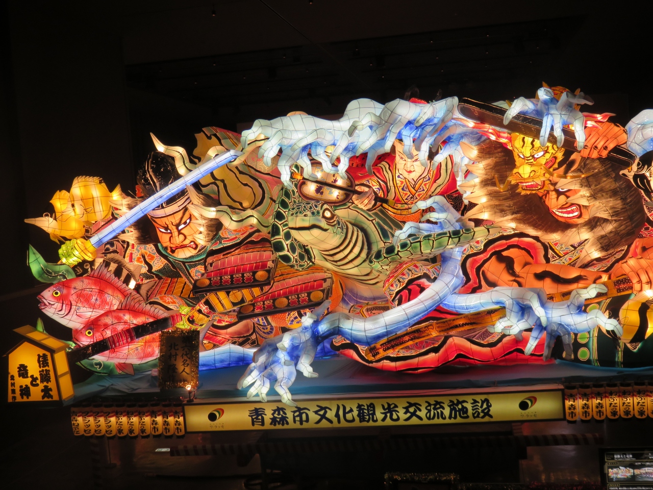 ゴールデンウイークの後で行ったので館内は空いていました。ねぶたの展示会場には去年のねぶた祭りで最優秀賞や優秀賞など高い評価を受けたねぶたが飾られていました。下から見上げるとものすごい迫力で迫ってきます。係りの女性が詳しい説明をしてくれていつかは祭りを見てみたいと思いました。少しはなれたところの宿なら取れますよとのことでした。
