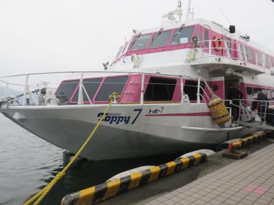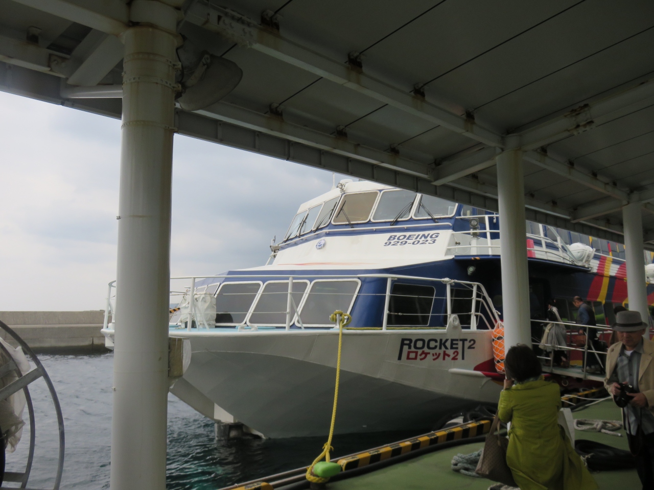 行きは指宿から屋久島の宮之浦港までトッピーで1時間15分、帰りは宮之浦港から鹿児島港までロケットで1時間50分。座席指定で平日でしたがほぼ満席でした。鯨やイルカが泳ぐ海域だそうで、シートベルト着用でなるべく歩き回らないようにということでした。屋久島に行くには、便利が良くて速い、いい乗り物だと思います。