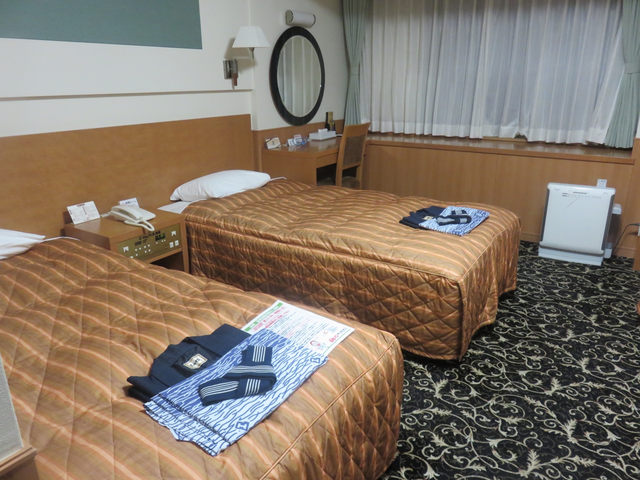 部屋は清潔で整っています。狭いながらも何もかも揃っていて過不足ありません。食事に出るのも億劫だったのでホテル内のバイキングレストランに行きました。夜は一人980円。種類は少ないですが一応の晩ご飯になりました。朝は無料でバイキングがついてきます。これも種類は少ないですが、朝ごはんには十分です。5000円以下で泊まれて満足しています。
