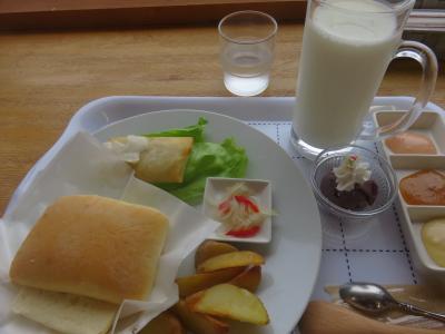 晴れていれば夕陽が見られるということでしたが、台風のさなかだったので仕方ありません。夕食は外で取りましたが、それで十分だと思います。朝ごはんのとき、前の日にコンビニで買っておいたパンを食べるのに飲み物のサービスがあり、とてもよいと思いました。