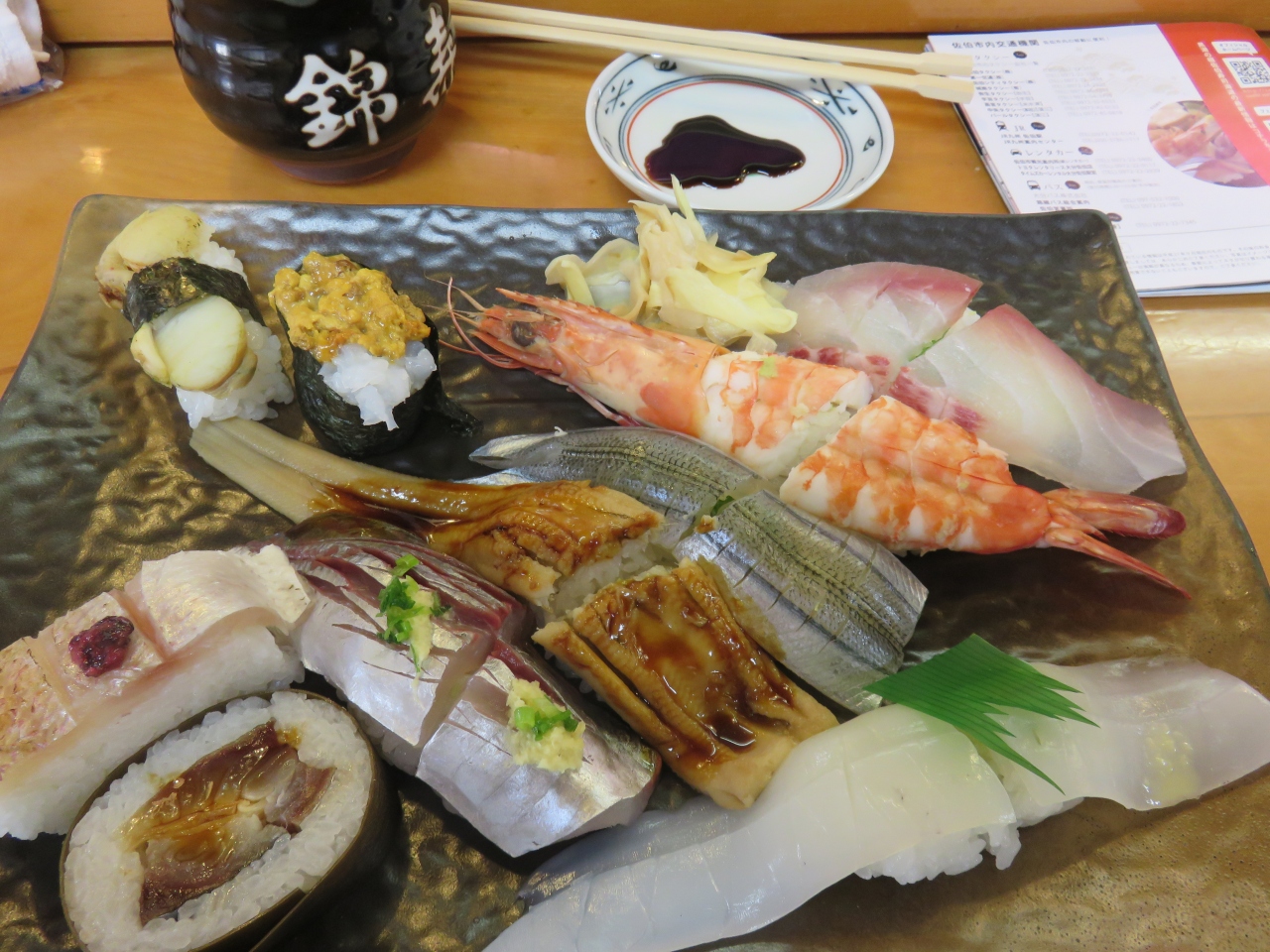 遅いランチでしたが結構席は埋まっていました。テーブル席でいただきましたがほとんどの人がタッチパネルで注文していたようで、割と静かでした。あまりにも注文してすぐに出来上がったときは、ただ上に乗せただけのシャリとネタがなじんでいませんでした。せめてちょっとぐらい握って欲しいと思いました。クエの握りが食べたくて行きましたが白身のおいしい魚でした。近海もののネタはおいしかったです。