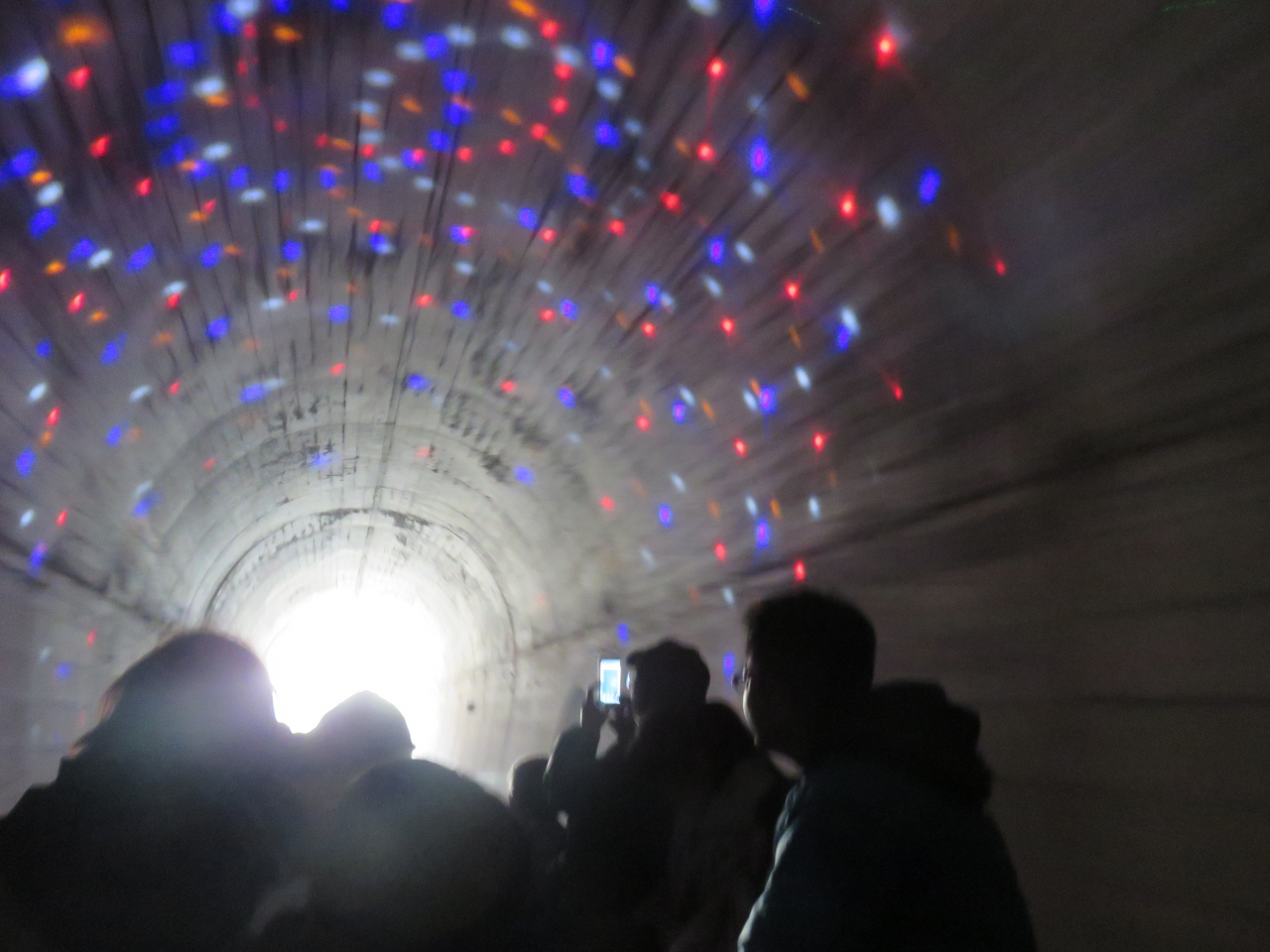廃線になった旧高千穂鉄道の線路を走るトロッコのようなスーパーカートという名前の観光用の乗り物です。8人乗りが2両連結なので運転手さんを入れて一度に16人しか乗れません。10時発の一番列車?に乗りたかったので9時半ごろ旧高千穂駅に行きました。窓に本日運休という紙が張ってあったので不安になりましたが、10分前に受付が始まって一番列車の切符を買うことができました。人数が定員を超えると、次の列車になるので多くの人が予約していました。高千穂鉄橋までの往復で30分のツアーです。まさに軽トラの荷台に乗っている感じでスリルがあります。トンネルの天井にミラーボールを投影したり、高千穂鉄橋の上でシャボン玉を飛ばしてくれたり、いろんなお楽しみを提供してくれます。現在、鉄橋の次の駅まで延長を申請しているそうです。スタッフの皆さんが熱心に取り組んでおられるので、延長できるといいなと思います。