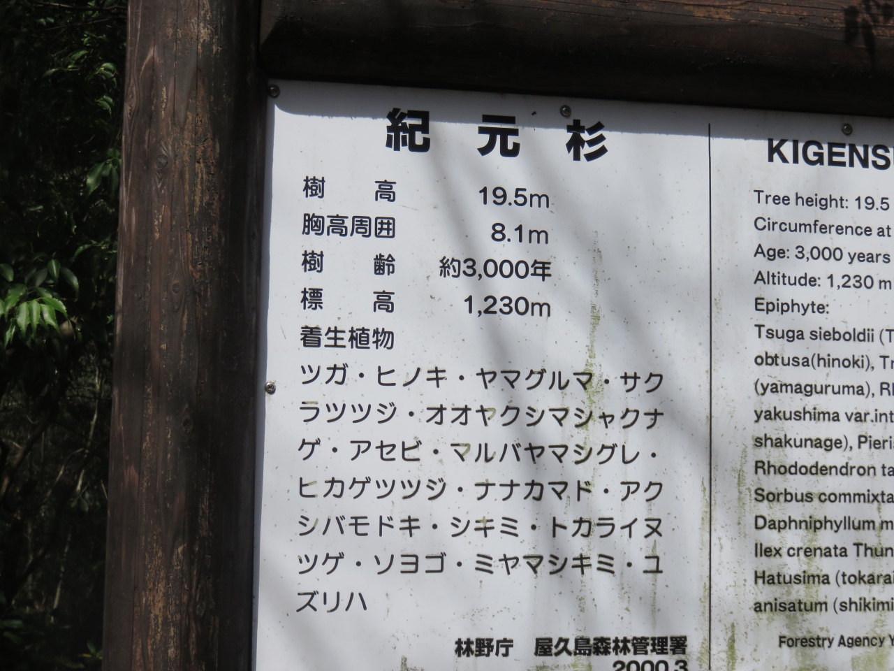 紀元杉はごつごつした表面が歴史を感じられ、ずっとここに立っているという堂々とした雰囲気でした。10種類以上の植物と共生しているたくましいヤクスギです。山道は歩けないという人でも見ることができるのがいいと思います。- 旅行時期