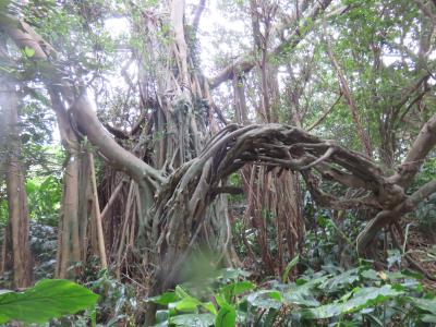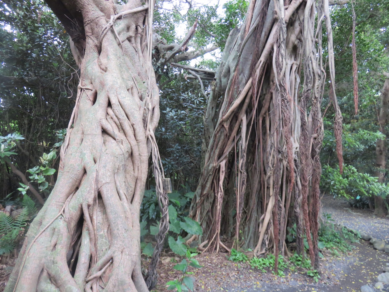 園内はうっそうとして木漏れ日がちらちらさすぐらいで日本じゃないみたいです。ガジュマルの太い気根は好き勝手に伸び放題で面白い形を作っていました。馬の尻尾みたいな細い気根は人がぶら下がってもびくともしません。ターザンが木から木へと飛び移っていたのはおそらくこれだろう、なんて勝手に想像しました。