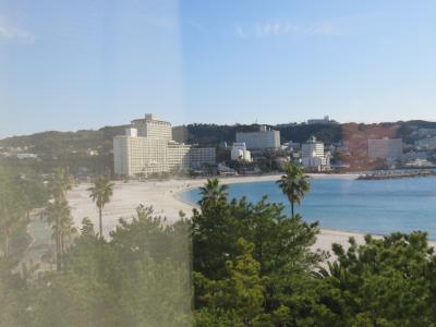 部屋の窓から、やしの木の向こうに真っ白な砂浜が弧を描いて見えます。ホテルのドアを開けるとすぐに砂浜があり、海水浴シーズンは人気のホテルだと思いますが、冬の砂浜もよかったです。ホテルは白良浜の端のほうにあるので、歩いて3分ぐらいで夕日で有名な円月島を見にいけます。2階の露天風呂は海がすぐ近くに見えて開放的でよかったのですが、海岸を散歩していたときに入浴中の女性の姿がはっきり見えていたので、あまり湯船の外側に行かないほうがいいと思います。食事はお刺身やクエの小鍋など、地元の食材が並びおいしかったのですが、食べ終わるかどうかというときに食器を下げにこられて、少し気ぜわしい思いをしました。時間予約だったので次のお客が来る時間が近づいていたのかも知れませんが、残念でした。