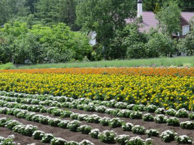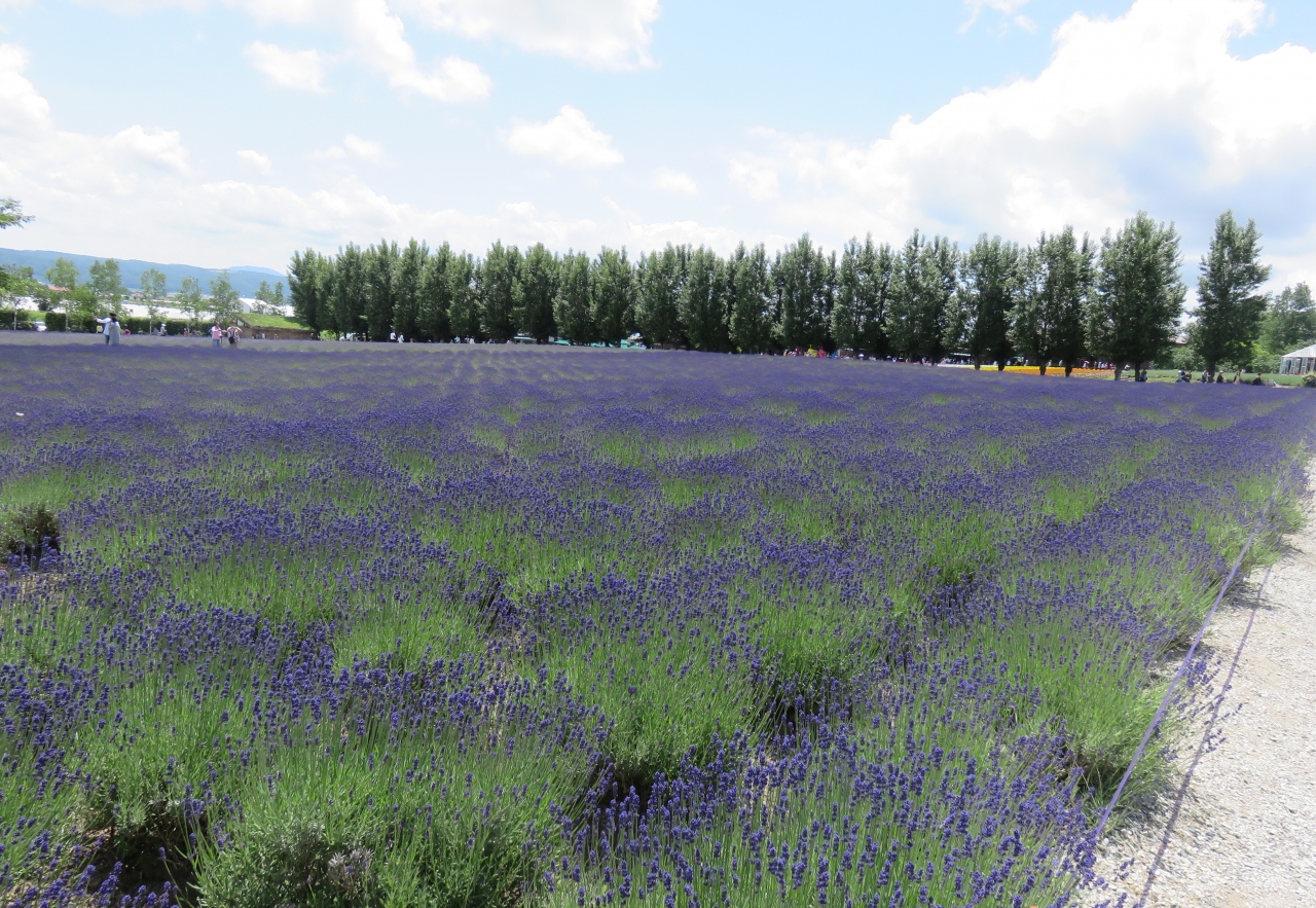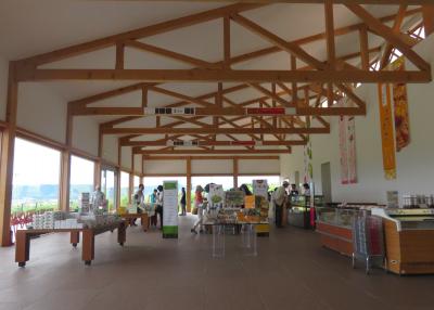富良野の市街地から少しはなれた丘の上にあり、周囲は低いぶどうの畑に囲まれてヨーロッパのブドウ畑の風景みたいです。建物の外観はシックで中は大きなガラス張りで明るくて広々しています。木製の大きなデッキに出ると富良野市街が見下ろせて気持ちがいいです。無料のコーヒーが置いてあるイートインのコーナーではカンパーナのオリジナルスイーツを食べられます。他のお菓子はどこででも買える六花亭のもので珍しくはありませんが、ちょっと休憩するにはとてもいいところです。
