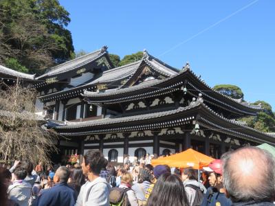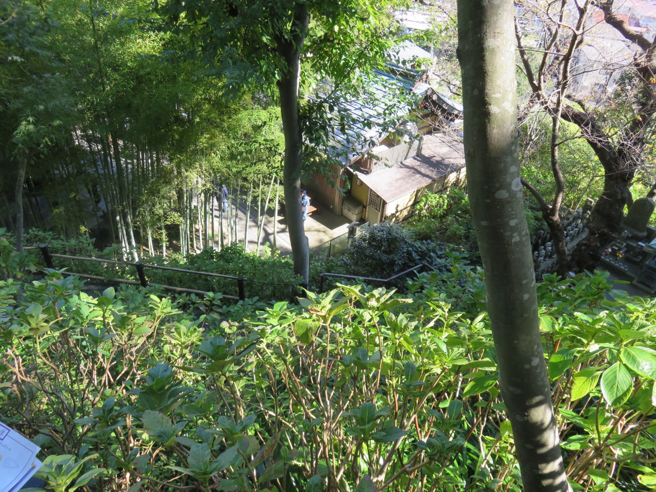 あじさいの季節は大変な人出だそうですが、何も咲いてない、紅葉には早いという季節ですがたくさんの人でにぎわっていました。あじさいの散策路はほとんど誰も歩いていませんでしたが、あじさいの木がびっしり植えられているのを見ると、咲いたときの素晴らしさは想像できます。あじさいが咲いた季節に行ってみたいものです。観音様は金色で奈良の長谷寺と同じ感じです。あちらはボタンの花で有名、こちらはあじさい、お花が似合う観音様です。