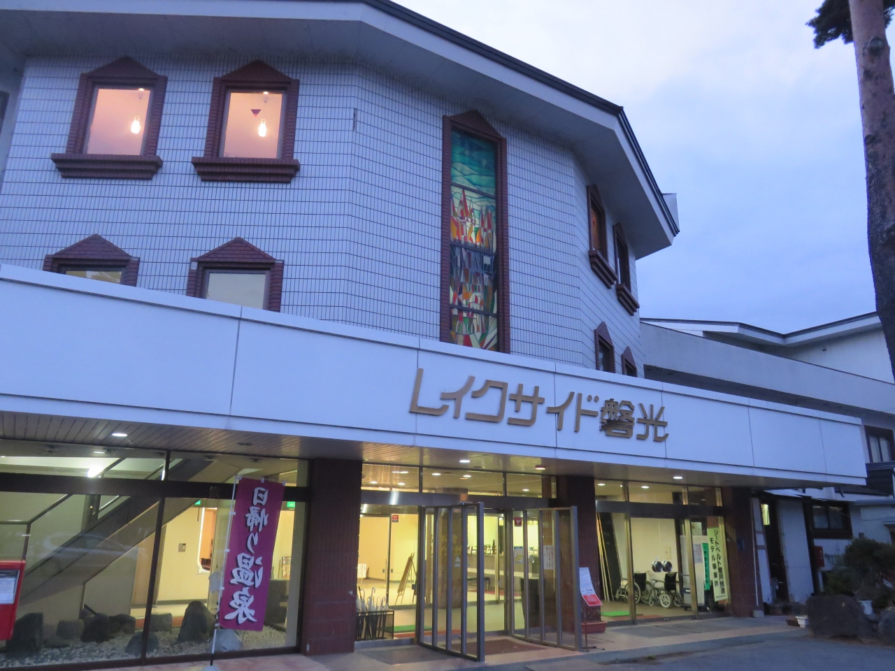 ドライブインの続きにあるホテルです。2人で泊まるには広すぎる2間続きの部屋でした。窓の外は猪苗代湖が目の前に見えます。砂浜を散歩しましたが波が打ち寄せてすがすがしい気分になります。晴れていれば夕日が沈むのが見えるそうですが、雲が多くて残念でした。スタッフの女性がとても親切に説明してくれて、今日は夕日が見えなくて残念ですといってくれたのが印象に残っています。食事は時間指定したにもかかわらずすべて冷え切っていて、米どころにしてはかなり残念なご飯が出てきてびっくりしました。