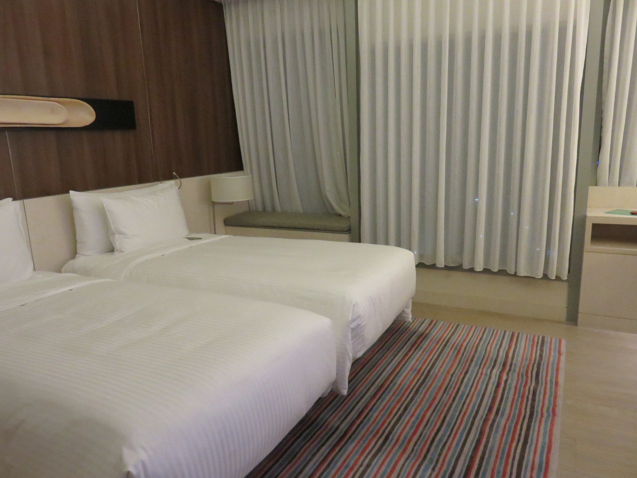 MRTのノビナ駅に直結していて移動がとても楽です。駅をでて2.3分ぐらいでホテルのエレベーターまでいけるので買い物して荷物を置きに帰るのも簡単で助かりました。オーチャードまで2駅、マリーナ方面にも簡単にいけます。窓から見えるのは大きな病院でしたが、朝出かけて夜帰ってくる毎日だったので夜が静かでよかったです。最初は冷房がかなり効いていたので、すぐに調節しました。最終日はチェックアウトして荷物を預かってもらいゆっくり遊べました。タクシーもすぐに呼んでもらえます。