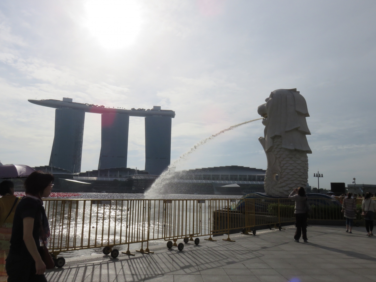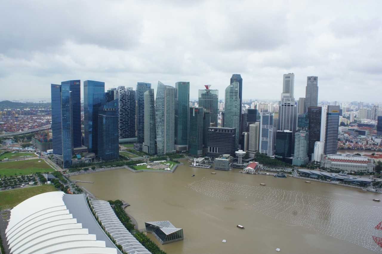 ラッフルズプレイスの駅からシンガポール川にでたところのリバーエクスプローラーのクルーズ船に乗りました。一人22ドル、約45分のクルーズです。シンガポール川からマリーナ湾にでてマーライオンの横を通って湾をぐるりと1周してベイサンズホテルの前を通り再びシンガポール川に戻るコースです。海から見上げると景色が違って見えてお勧めです。船内は木製のベンチがあり、暑さを感じることもなくゆっくり景色が楽しめました。