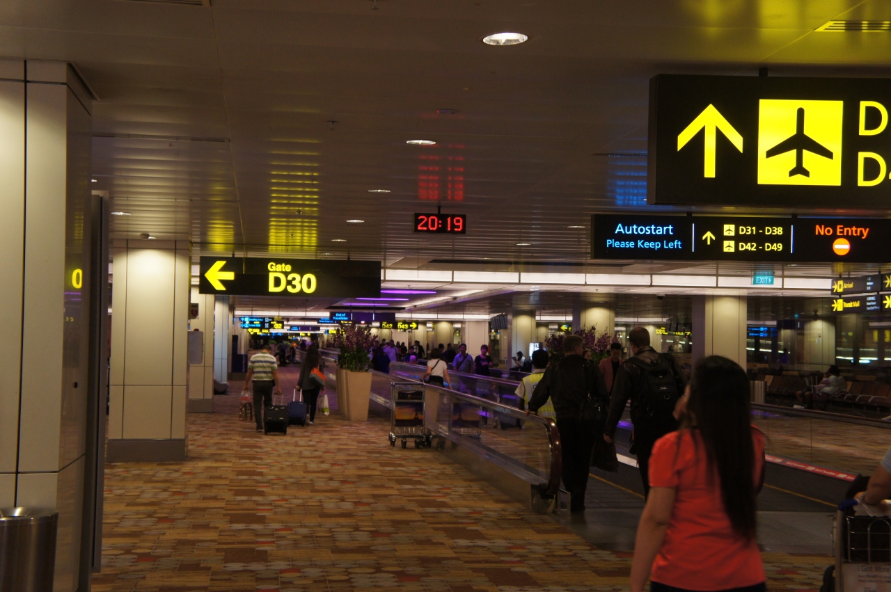ターミナルが3つあるので無料のスカイトレインで移動します。ターミナル2と3の間にMRTの駅があり切符も簡単に買えて、市内まで30分あまりで行きます。夜の8時ごろでしたがあまり混んでなかったので大きなスーツケースをもって乗っても大丈夫でした。帰りにMRTチケットの払い戻しにすごく時間がかかって、かなりあせりました。払い戻しを受けるときは早めに行ったほうがいいと思います。そのかわり?免税の払い戻しは簡単ですぐにできたのでよかったです。