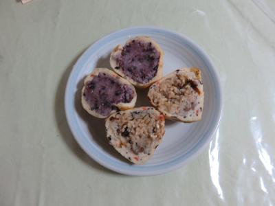 市場どおりをぶらぶらしていて見つけました。沖縄のてんぷらがだいすきなのでお土産に買いました。ランチの後だったので食べ歩きはあきらめて真空パックのものを買いました。ジューシーと黒米の2種類で400円でした。大きな丸い形でかなりボリュームがあります。「おまけあげましょうね」といってチーズ入りのかまぼこを袋に入れてくれました。沖縄の言葉も好きです。