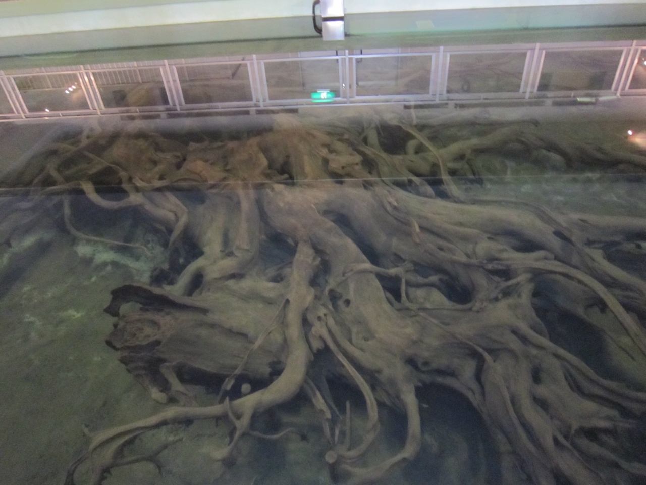 大きなスクリーンで埋没林と蜃気楼についての映像が見られるので、どういう現象なのかがよくわかります。埋没林というものは初めて見ました。2000年以上前に埋没した杉の原生林が現代に出現したものですが、すごいものです。まだ発掘されていないものもあるそうです。海に沈んだ杉の周りは冷たい真水で守られて腐らなかったそうです。水中で保存展示されている杉の根と、乾燥して展示しているものがあります。乾燥しているものはさわれます。数え切れない年輪が刻まれていて、2000年の歴史を感じられます。