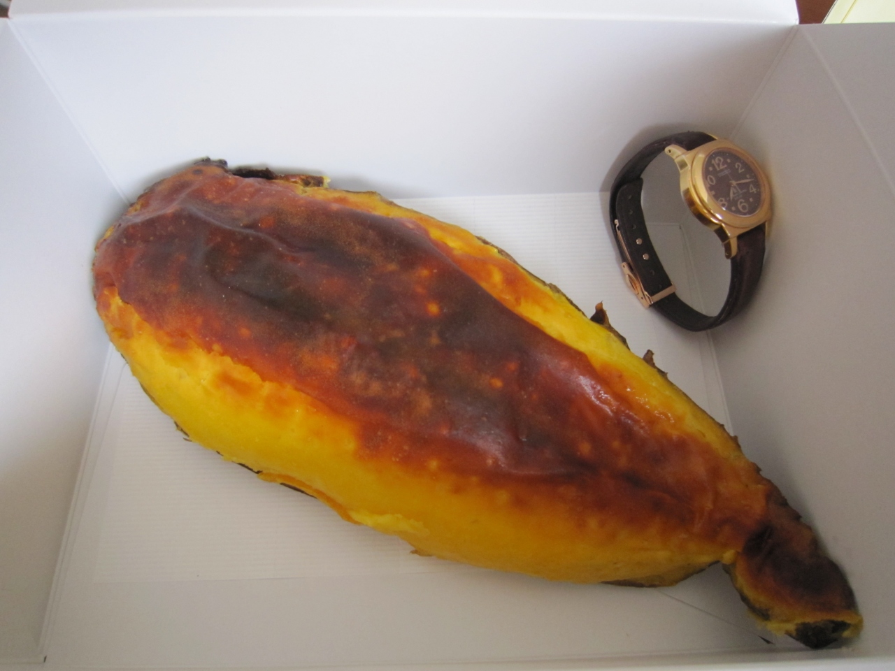 サツマイモの甘さとカスタードクリームの甘さ、どちらもほどほどの甘さで結構な量を食べてしまいます。皮が容器代わりになっていて中身がぎっしり詰まっています。100g199円は高くないと思いますが、小さいのが欲しくても大きいのしかない時は、仕方ないので大きいのを買うしかありません。大きくても食べてしまうんですけど。