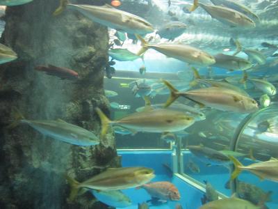 大掛かりな水槽はありませんが良く工夫されていて楽しめました。魚は日本海に居るものが多く、ブリやカンパチ、タイなど普段見慣れている魚も泳いでいる姿はきらきらしてとてもきれいです。ダイバーが水中でえさをやるところも見られます。ダイバーの周りに魚たちが集まってきて大きな口を開けてパクッと食べるところが可愛いです。魚が輪くぐりなどの芸をして楽しませてくれますが、大変な訓練を重ねているのでしょう。水槽を上からのぞけるようになっていますが、狭いので少し見にくいです。