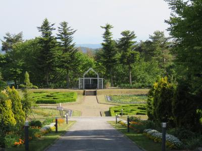 入場料が65歳以上は700円です。受付棟の向こう側にガーデンが広がっています。階段や坂道でつなぐガーデンは広々としていて遠くに海を望むことができます。海の向こうには立山連峰が見えるはずでしたがお天気は良かったのですがかすんでいました。チューリップが終わってバラが咲くにはまだ早いという季節だったので観光客は少なくおかげでゆっくり見て回ることができました。シャクナゲやつつじがきれいに咲いていました。温室にはマーガレットが咲いて馬車も飾られていました。。あちこちにバラ園があってつぼみが伸びていましたのでバラが咲く季節は素晴らしいと思います。バラの季節はもっと込み合うと思いますが満開の時に行ってみたいです。