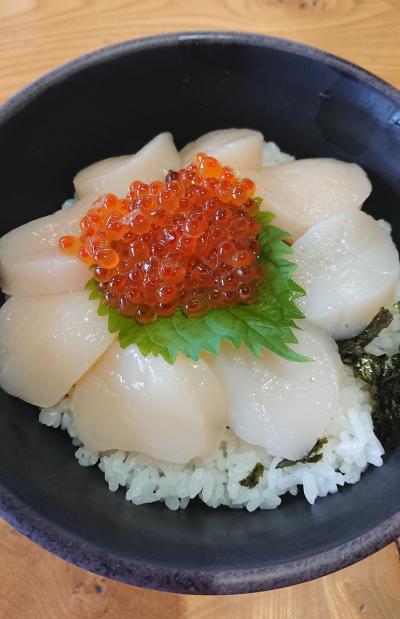 タラバガニやボタンエビ、カキやホタテなど炭火で網焼きしていただきます。観光客料金でしたがおいしくいただきました。魚介はもちろんおいしかあったですが〆に食べた具だくさん茶漬けがとてもおいしかったです。練ウニやサケ、塩昆布など本当に具沢山でいい〆になりました。