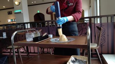 メルヘン交差点の近くにあります。ドゥーブルフロマージュのセットを食べに行ったのですが店の入り口にあった立て看板でモンブランのことを知り、注文しました。席の横でメレンゲの上に栗のクリームを絞り出してモンブランに仕上げてくれます。1ミリの太さのクリームは繊細で賞味期限10分だそうです。パフォーマンスもよかったし味もおいしかったです。