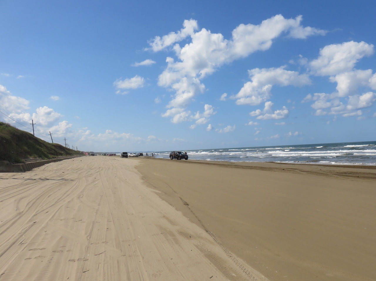 4連休中だったので結構な人出でしたが密になることはありませんでした。お天気が良かったので空も海もきれいで、すがすがしい気持ちになりました。細かい砂が固く締まっていてどれだけ車が走ってもへこんだりすることはなくて、道路よりも凸凹がなくて走りやすかったです。