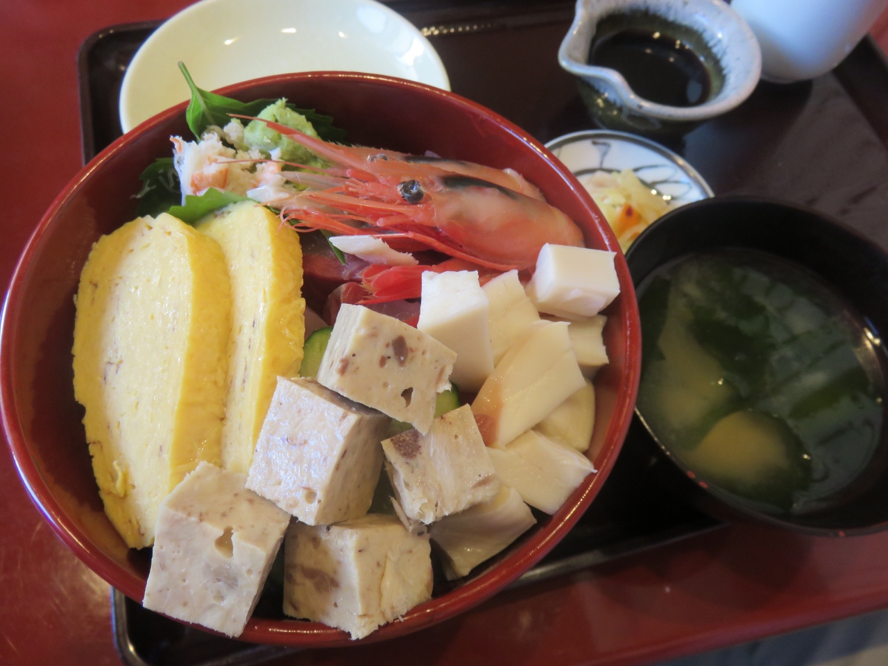 キリコ会館のそばにある料理屋さんです。能登丼マップにのっていました。お昼の最後に入れました。次に来た人は断っていたのでラッキーでした。海鮮丼は上に乗っているものが地味なものだったのですが、たこの角切りやマグロの固めたものの下にはお刺身がぎっしり乗っていておいしかったそうです。フグ丼はお店の一押しのようでフグのテンプラが所狭しと乗っていて抜群においしかったです。値段も2000円以下で食べられてよかったです。