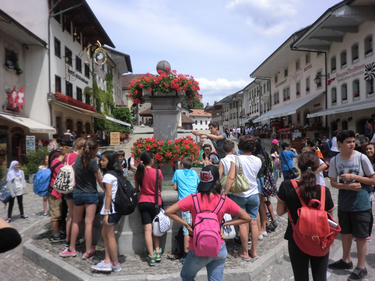 特産のチーズの名は世界に知られメインストリートにはチーズのみならずお土産屋、カフェ、ホテルなどがこじんまりと並ぶ魅了的な村です。丘の上には古城もあり時間が許せば是非内部の見学もお勧めです。- 旅行時期