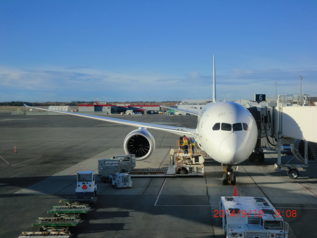 アンカレッジ空港ほどの知名度は無いようですが関空からの直行便が飛ぶJTBツアーということで参加しました。エコノミーながら、プラス15万円でらくらくシートが選べて快適でした。サービスは勿論行き届き夜間飛行の疲れもさほど感じず朝方アラスカに到着しました。(関空を夜8時に発ち翌朝9時半に到着)従来の乗り継ぎのロスと疲労を考えると夢のようでした。