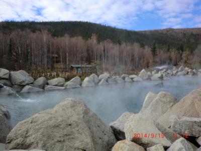 メインロッジであるアクテイビテイーセンターには日本人スタッフが常駐していて何でも相談できます。様々なアクテイビテイーが用意されていて一日中のんびりと付近を散策したり温泉で過ごす(7:00~24:00可)のも良いし予約して置けば遊覧飛行、犬ぞり、フィッシング、ハイキング等に参加できます。食事は地元産の食材を用いたまずまずの素朴な内容です。園内にヘラジカ等が入ってきてのんびりした雰囲気に包まれます。気温は9月で-2℃~9℃位です。部屋内の温度は快適に過ごせるよう調節が効きます。風呂は部屋タイプにもよりますが浴槽つきもあり、夜はオーロラ観賞が愉しめます。オーロラ観賞は寒いので出現を待つ間アイスクリームやドリンクを楽しみながらセンター内で待機しツアーで知り合った人たちと談笑に時を過ごすこともできます。Wi-Fi可
