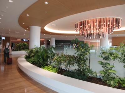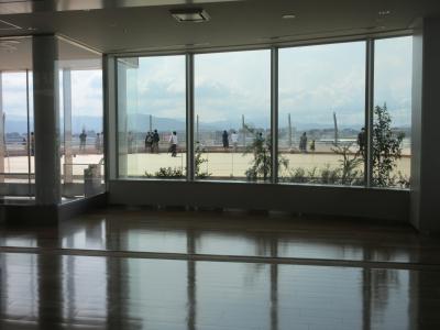 3階のレストランで食事を愉しんだ後、待ち時間を利用してすぐ上の展望階に上ってみました。夕方でしたがビルの内部からでも見晴らしがよくて素敵でした。搭乗する機体はANAですが俯瞰してみたのは初めてでした。