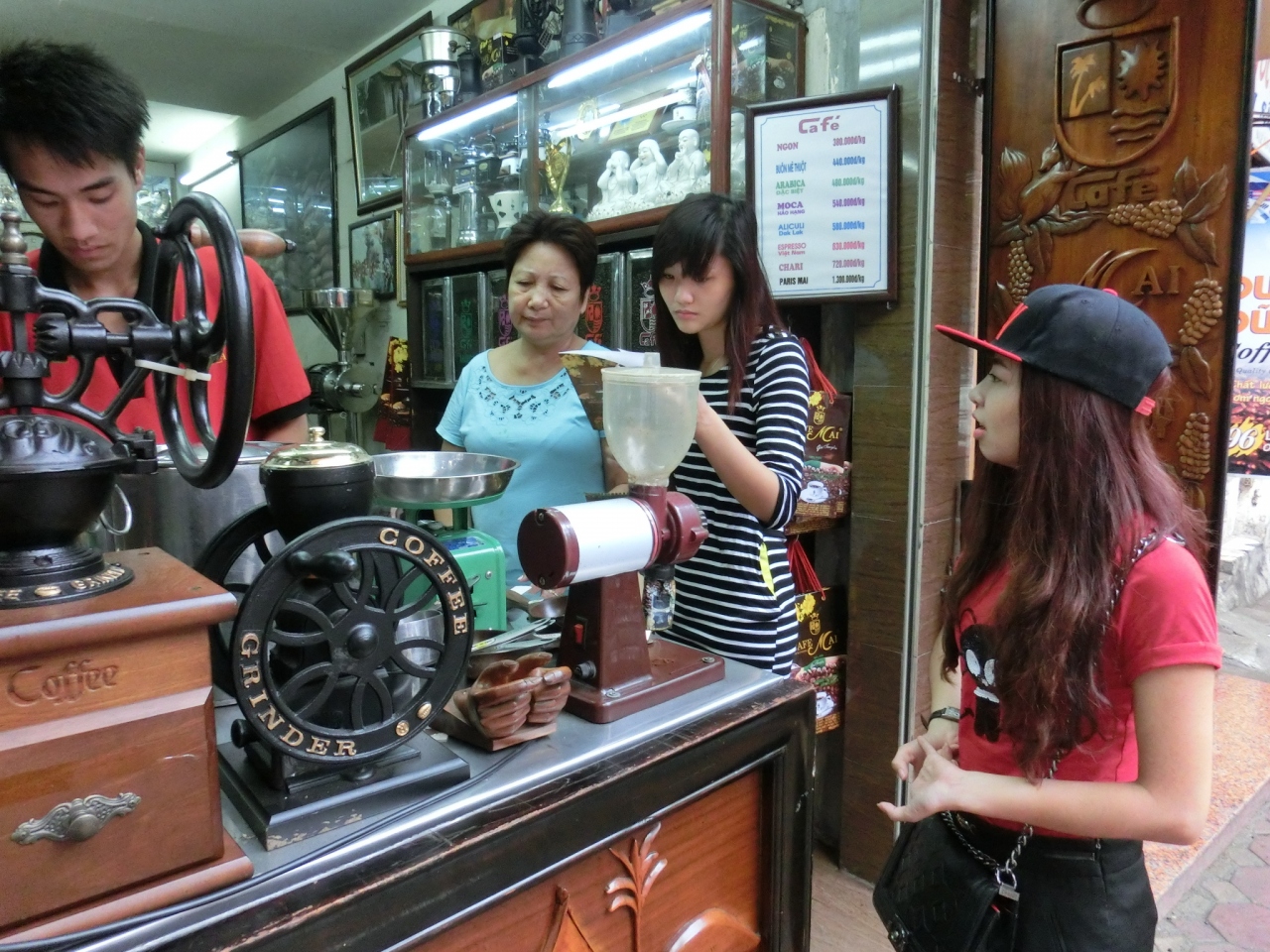 cafeマイに行ってきました。お土産のベトナムコーヒーとベトナムコーヒー用のアイテムを購入、コーヒーは、程よくロースト、あと、エスプレッソの豆も購入、その場で挽いてもらい、パック詰め。お持ち帰りには良い大きさです。
