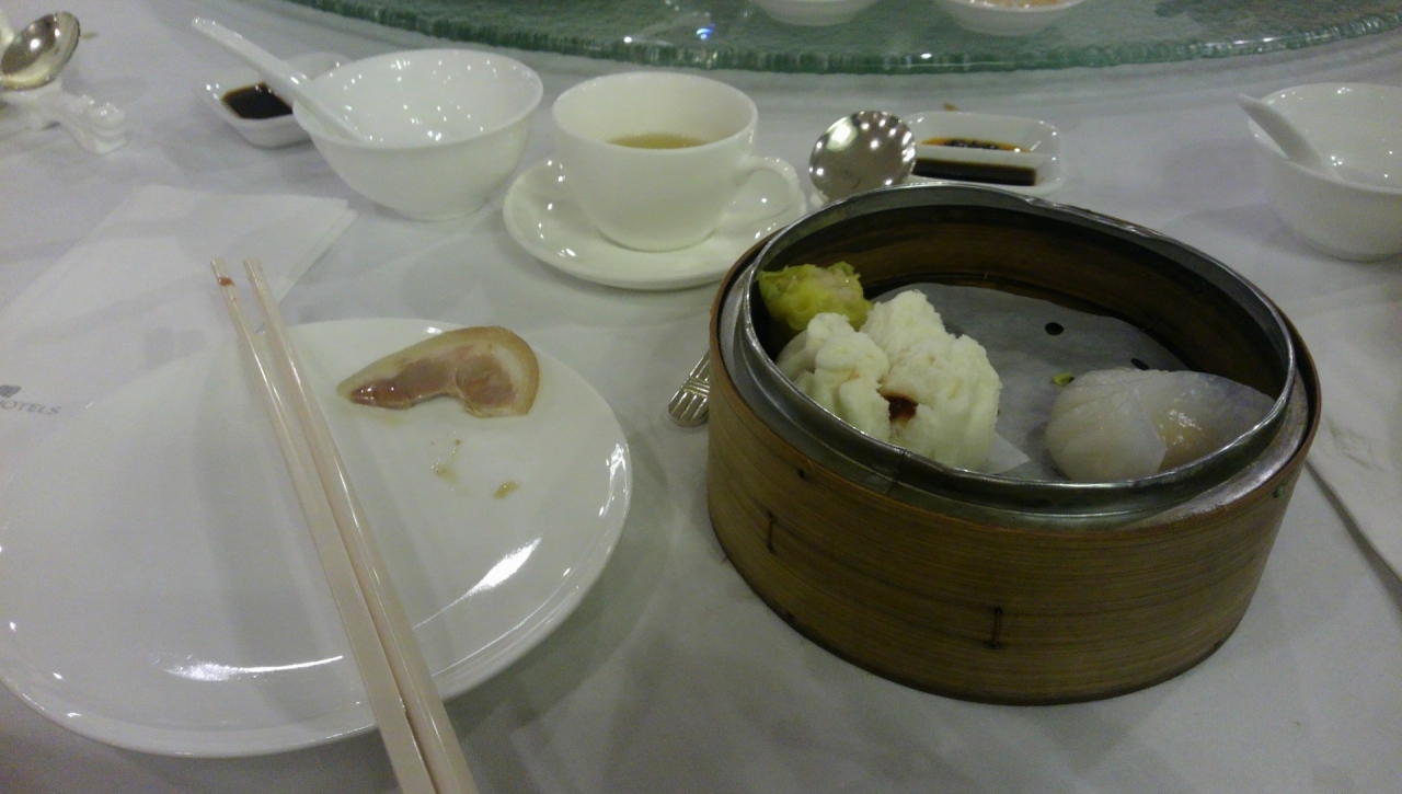飲茶のランチ:ちょっと高級店ぽい場所で食しました。10人くらい座れる円卓で食事をするのですが,可もなく不可もなくといったところです。無料なので満足です。