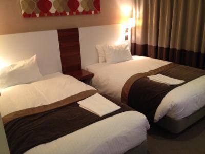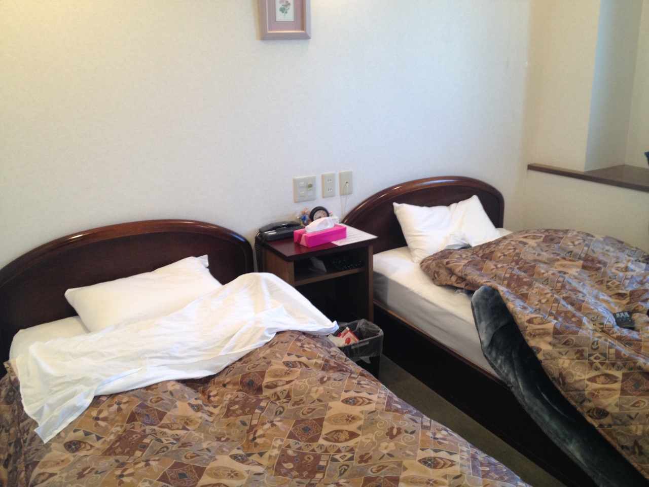 部屋はツインですが少し狭いです。小さいホテルなので仕方ありませんが静かに過ごせました。