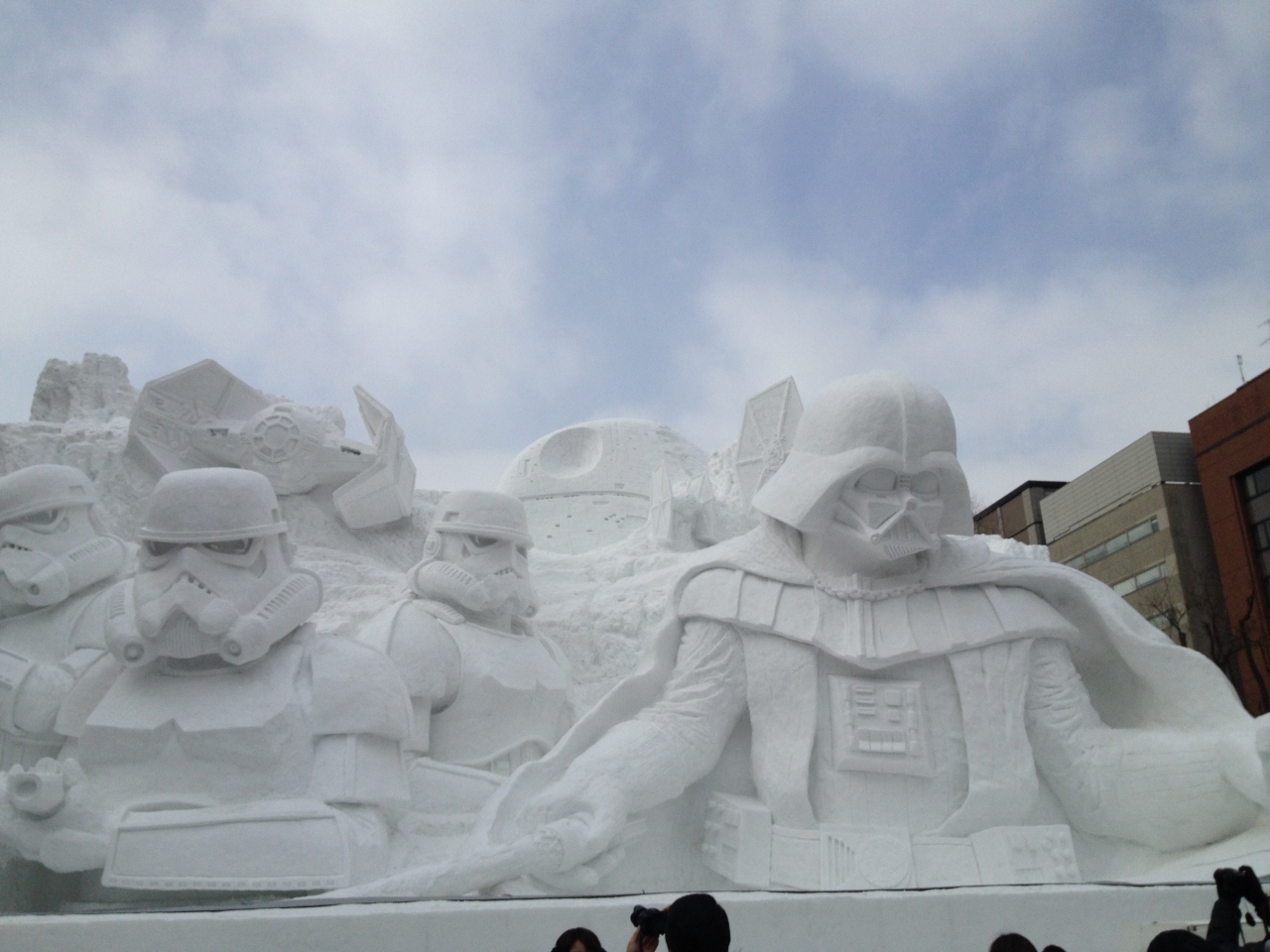 朝一で大通公園会場をぐるっと回りました。午前中は空いているのでゆっくり見ることができます。つまみ食いとかしながら見ても3時間くらいで回れると思います。