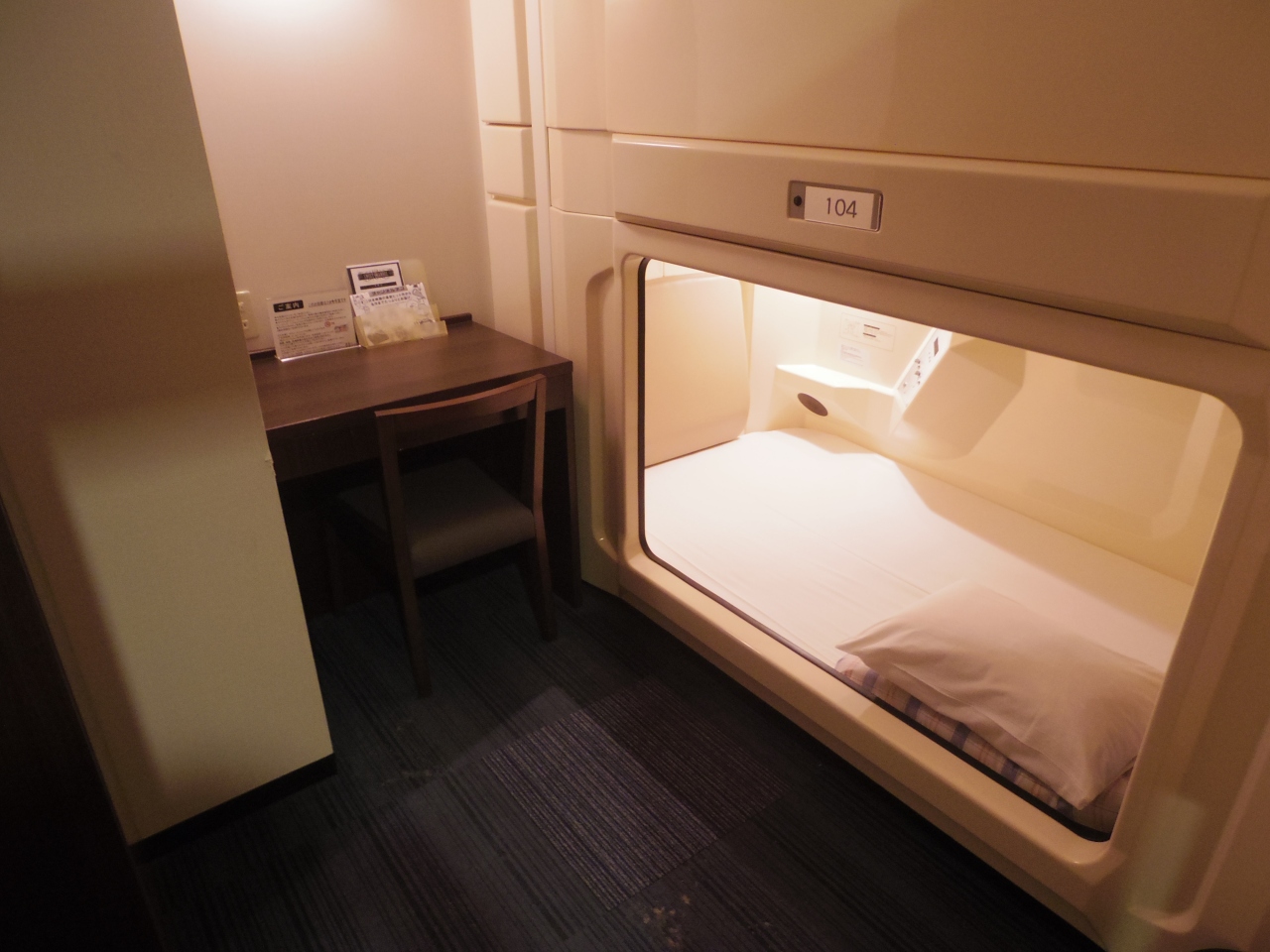 個室カプセルはデスクと椅子があり普通のカプセルよりかなり過ごしやすいです。