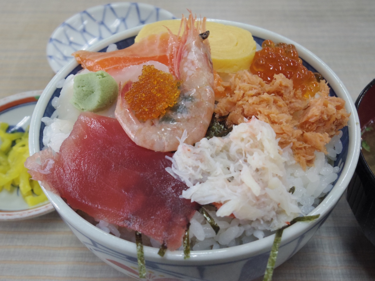 海鮮五目丼は具の種類もいいですが量は少ないです。