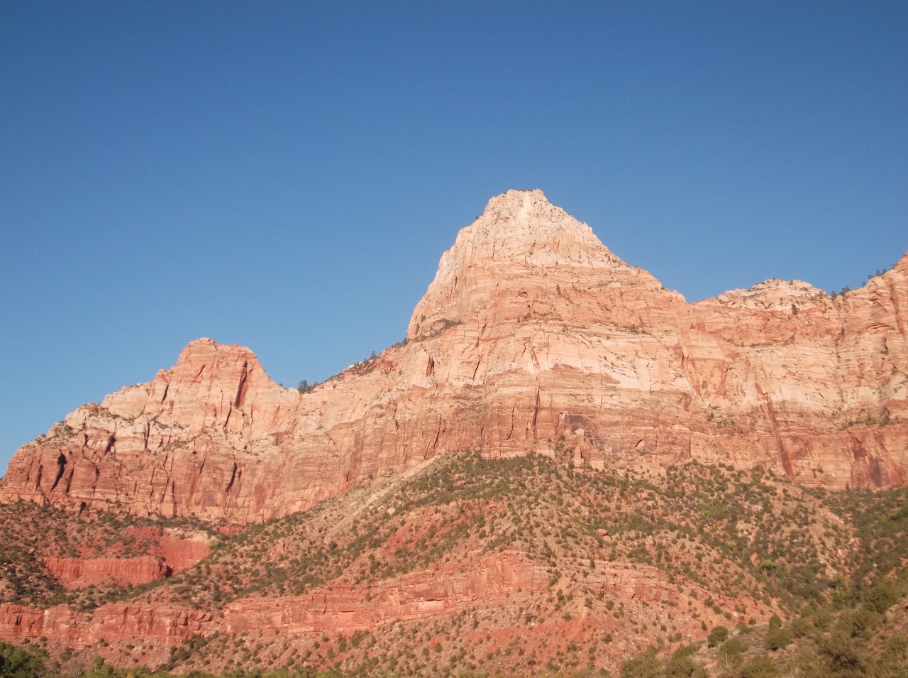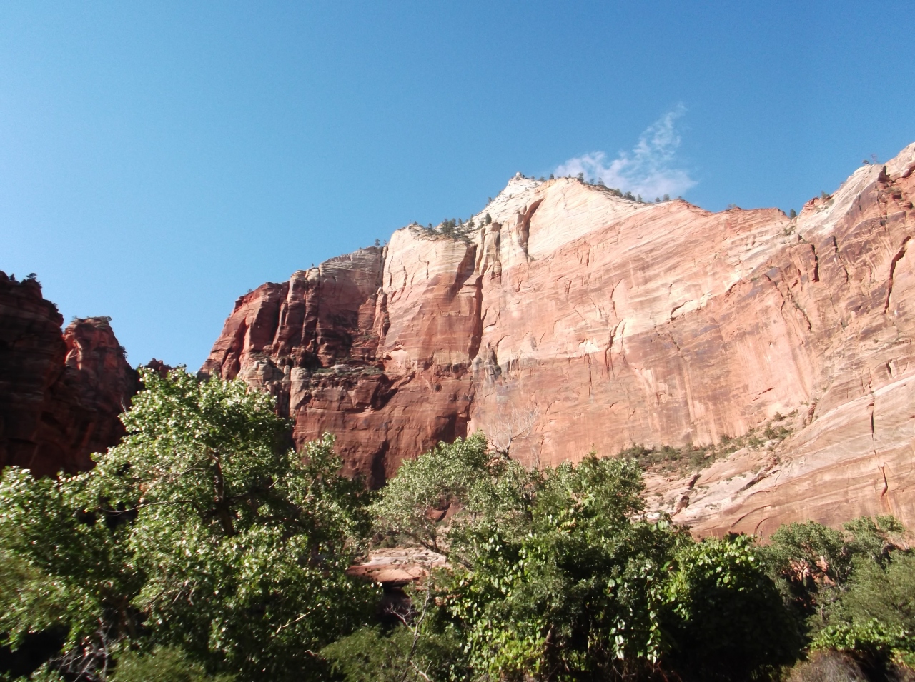 なおシャトルバスについてですが東のカーメルジャンクション方面から来たときはビジターセンターまで行かずに川を渡った道端の駐車スペースに車を停めて数分歩いてキャニオンジャンクションのバス停から乗車したほうが20分以上の時間短縮になります。- 旅行時期