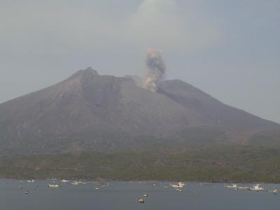 桜島が正面に位置しているのに昔ながらのサッシ窓で湯につかりながらだと山が見えない。