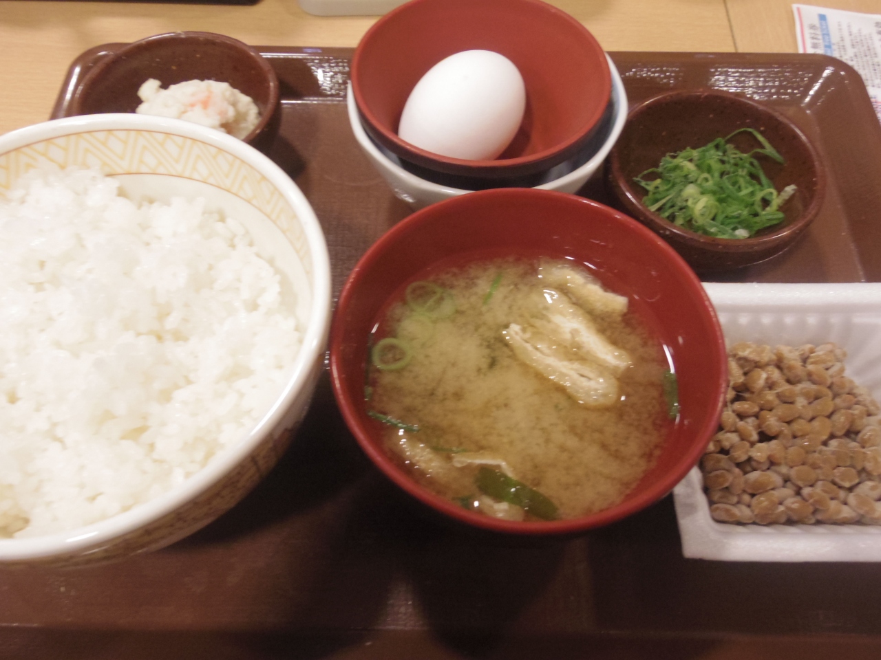 すき家の朝食ではよく「まぜのっけ」を食べるのですが今回は「たまかけ納豆」を食べました。