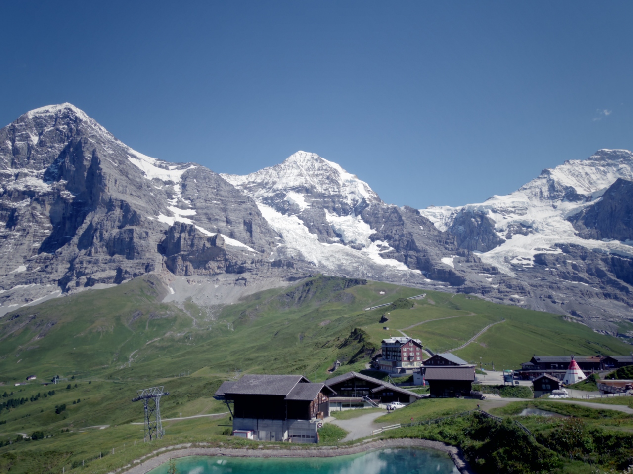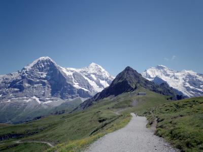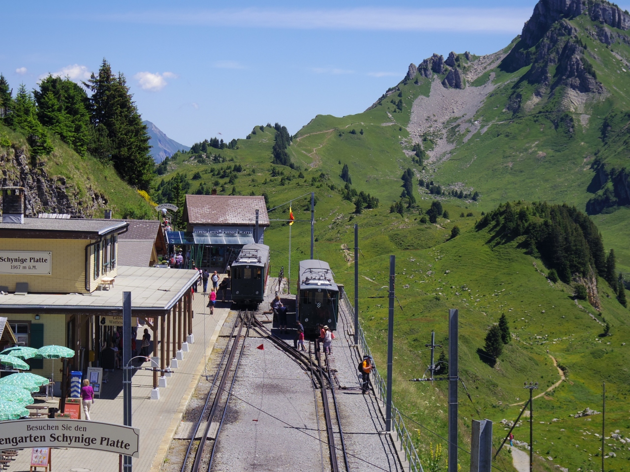 小高いこころからアイガー・メンヒ・ユウグフラウの山々、そして駅舎と登山電車とホテルの見えるすばらしい景色を見たくて何度も来ています。