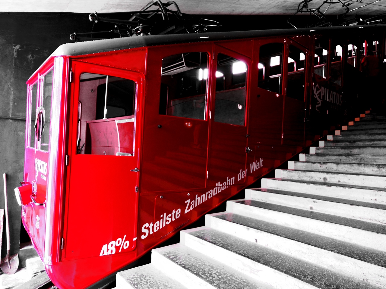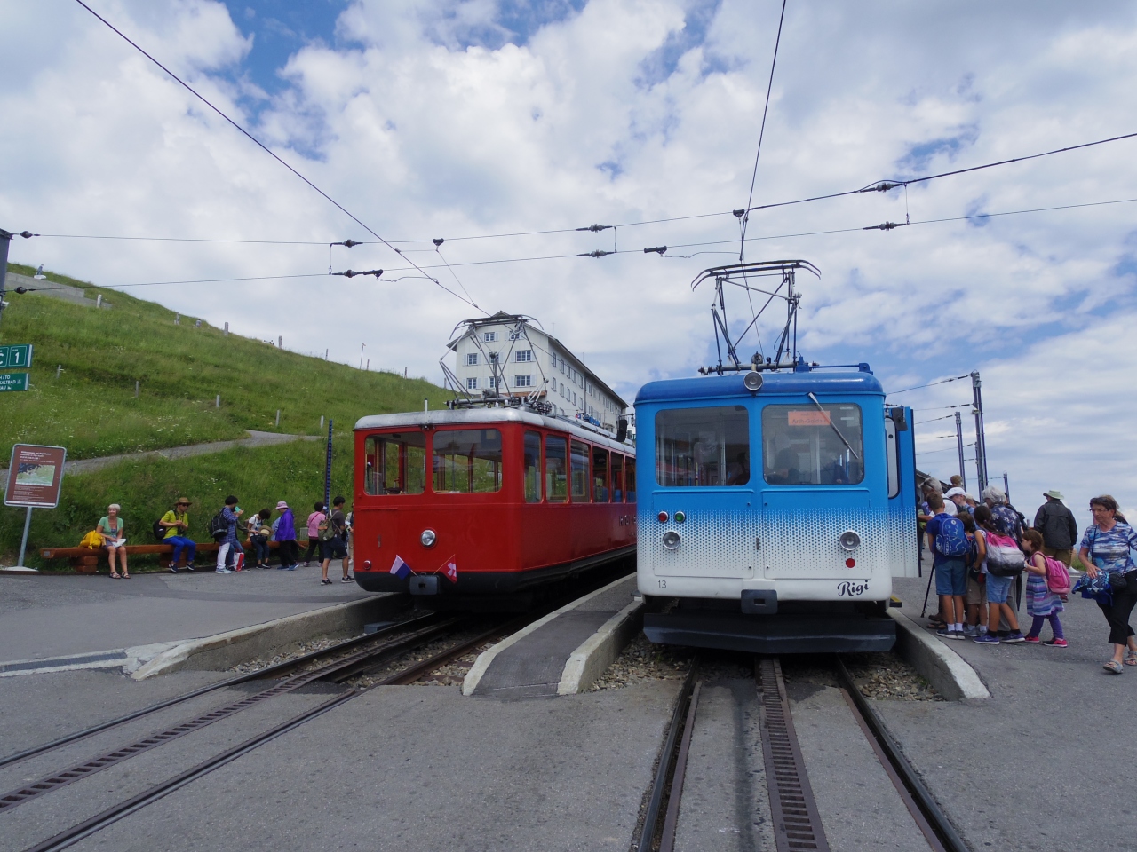 ルツエンから船でフィッツナウへ行き赤い電車で山頂に行きます。