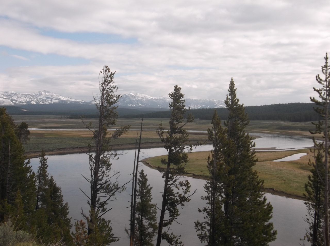坂を上ったところに駐車スペースがあり蛇行したイエローストン川が一望できます。