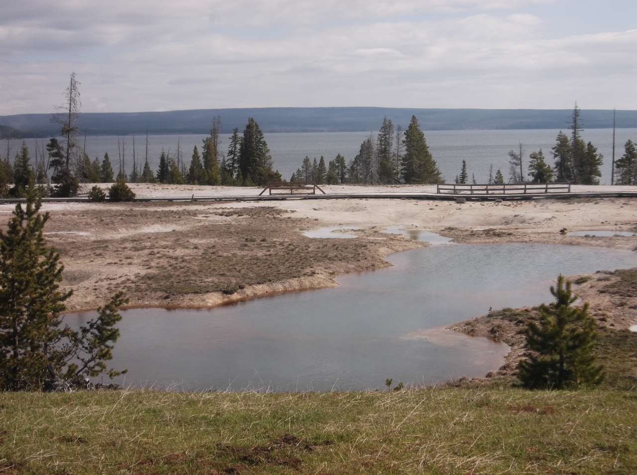 キャニオンビレッジから35マイル、イエローストーンレイクの景色を堪能しながら1時間で着きました。