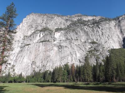 エルキャピタン正面の木々のない開けたところに駐車スペースがあり車を止めました。